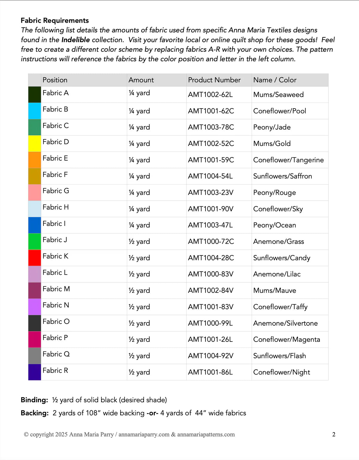 Anna Maria Textiles | Indelible | Pattern | Includes Pattern & Acrylic Templates