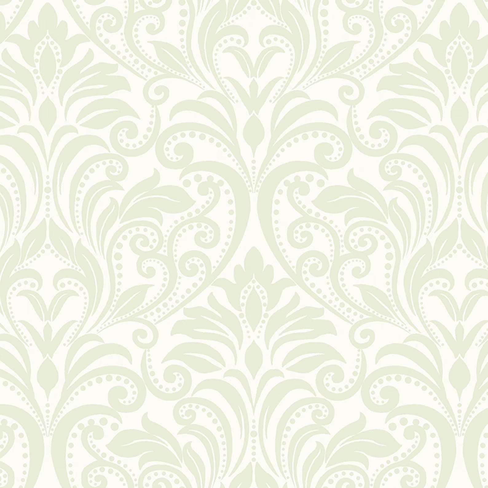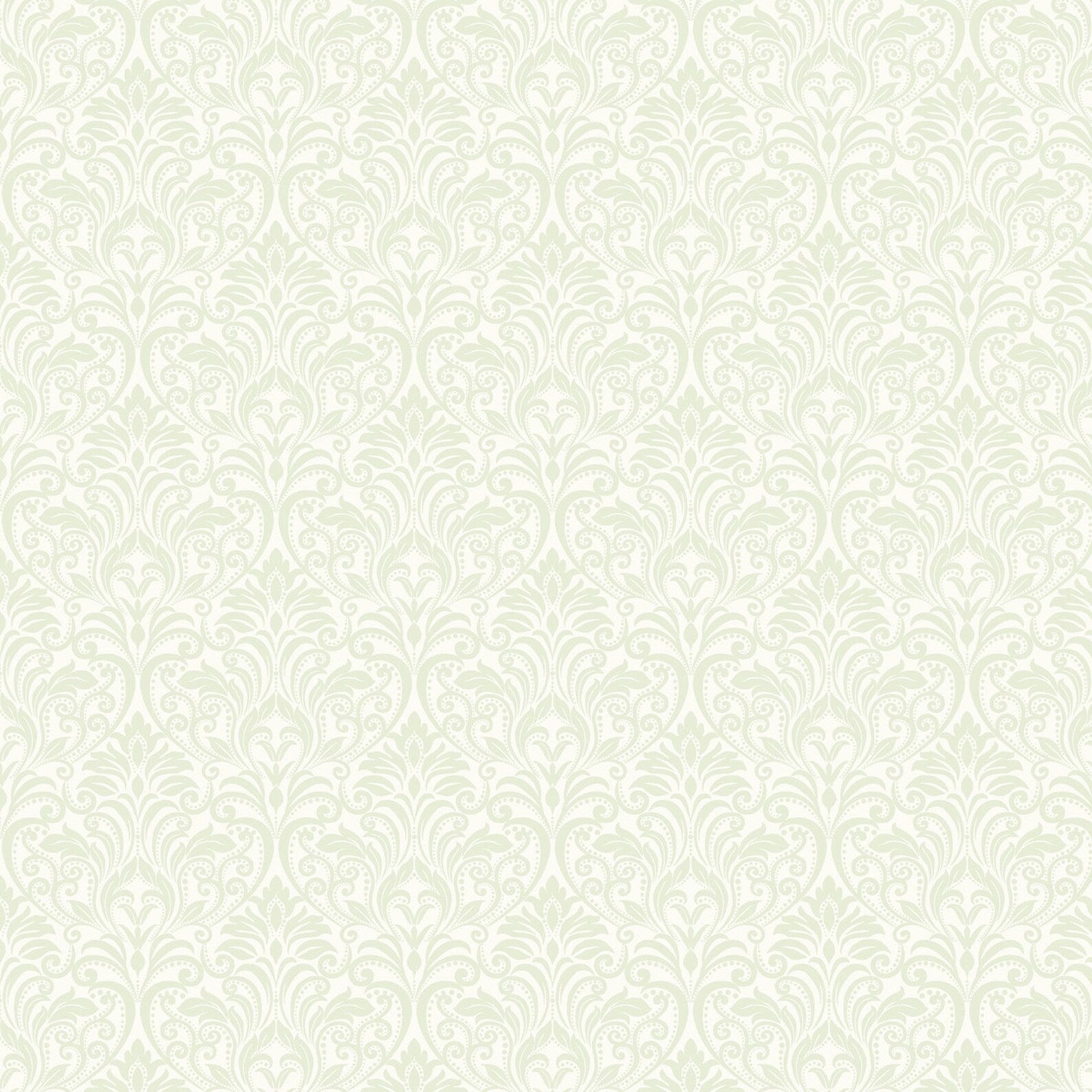 Festive damask green on white