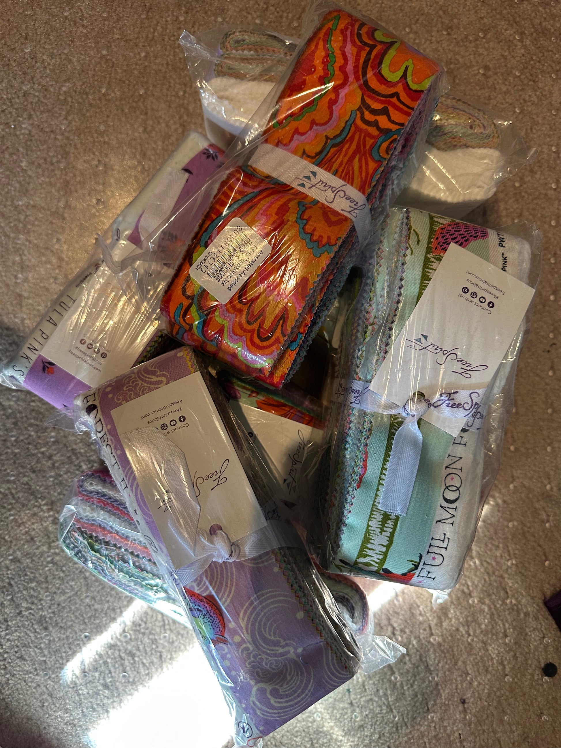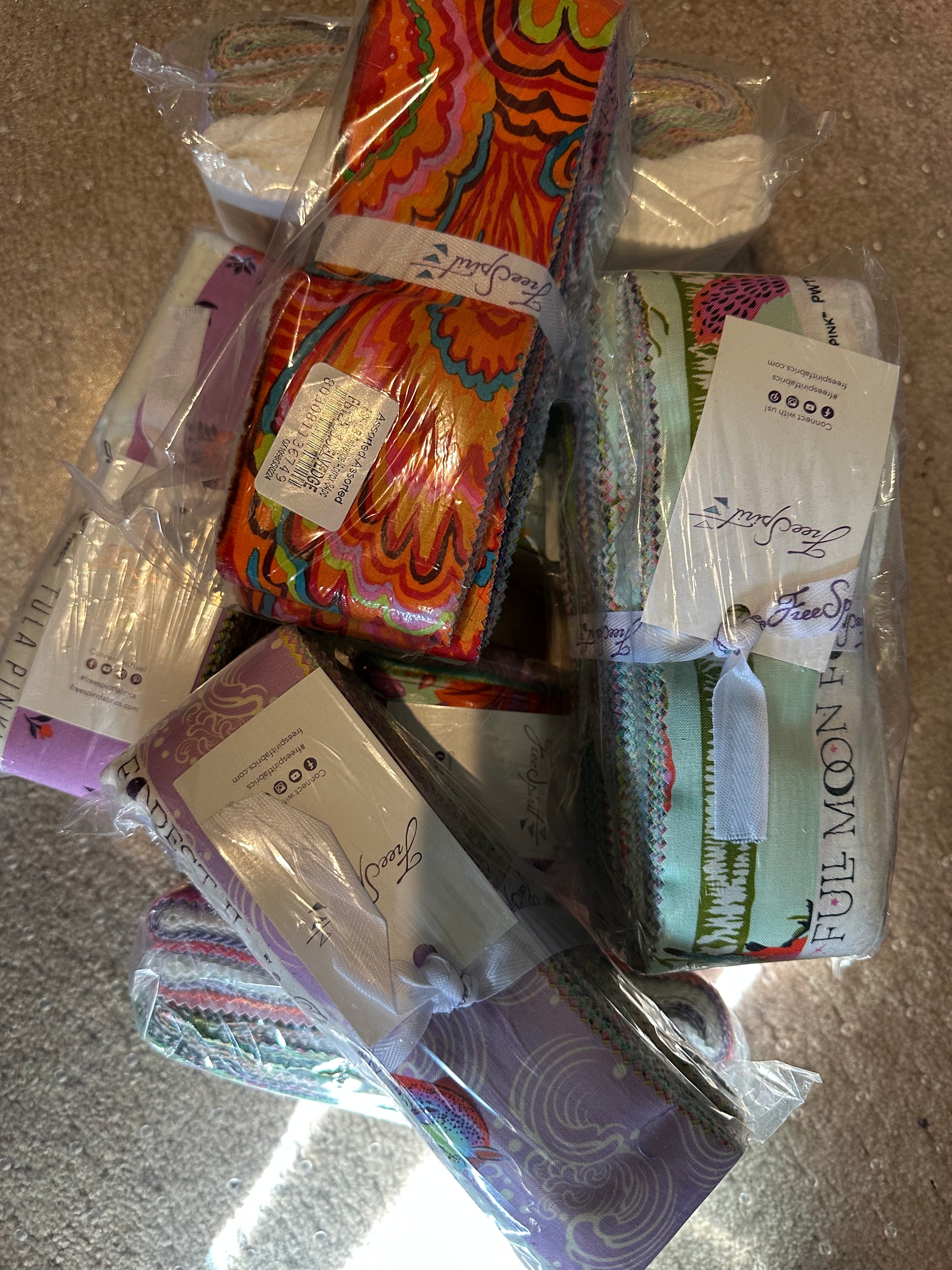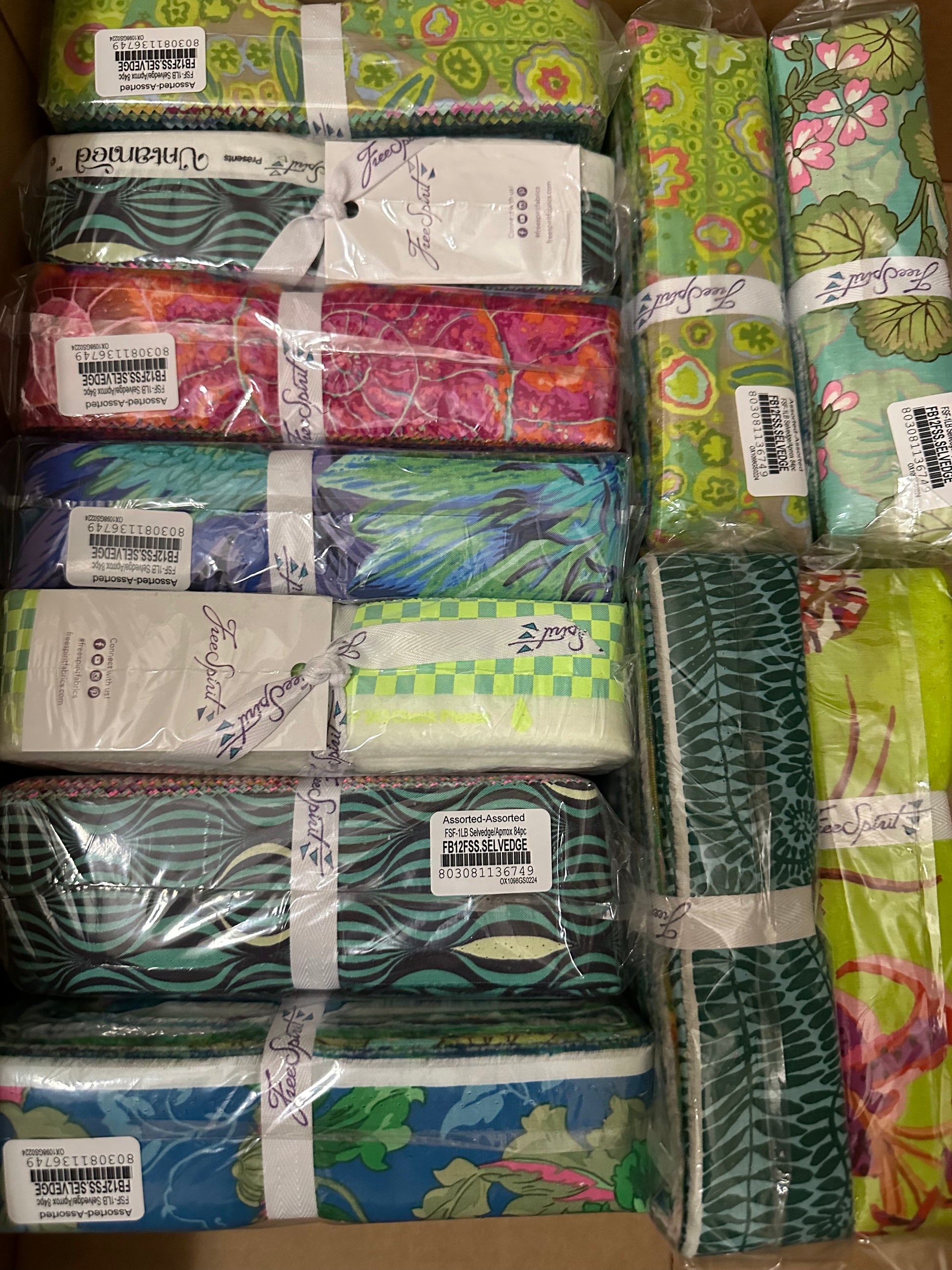 Manufacturer-packaged selvedge packs from FreeSpirit Fabrics, featuring colorful, graphic selvedges from designers like Tula Pink, the Kaffe Fassett Collective, and other prominent FreeSpirit designers. Perfect for selvedge quilts, bags, accessories, and creative projects that celebrate the details.