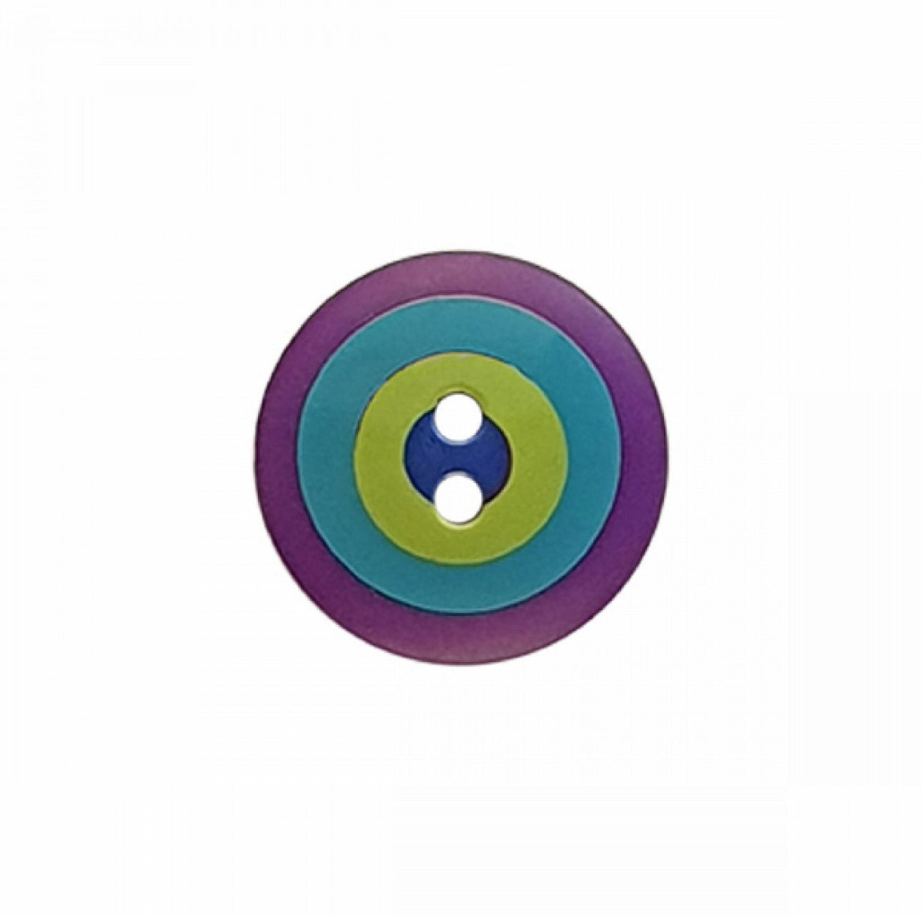 Kaffe has collaborated with Dill World of Buttons to create an exquisite range of gloriously colourful buttons that can be used for creative sewing projects. Embellish your projects or clothing with buttons designed by Kaffe Fassett. His genius sense of color and design are captured in his new collection of buttons for Dill Buttons. Kaffe Fassett Button “Target” in purple and blue.