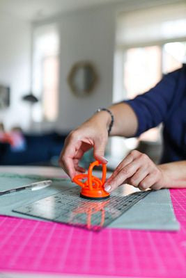 Small, but mighty suction cup helps keep your ruler in place. Reduces the risk of cutting fingers. Bring the handles together to grip your ruler. Open them up to release.