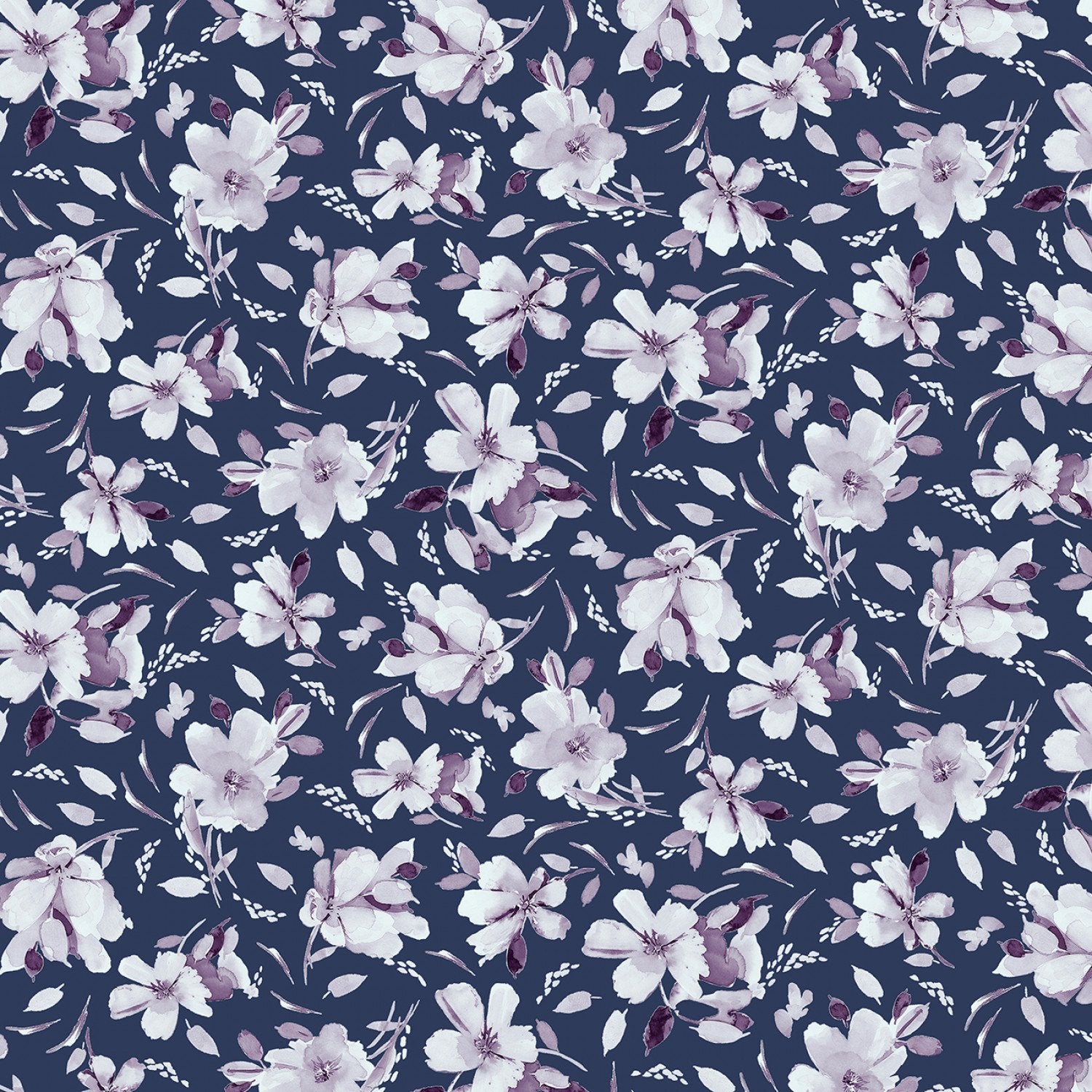 P&B Textiles | Meadow at Dusk | 5535-DB | Flower Toss Dark Blue