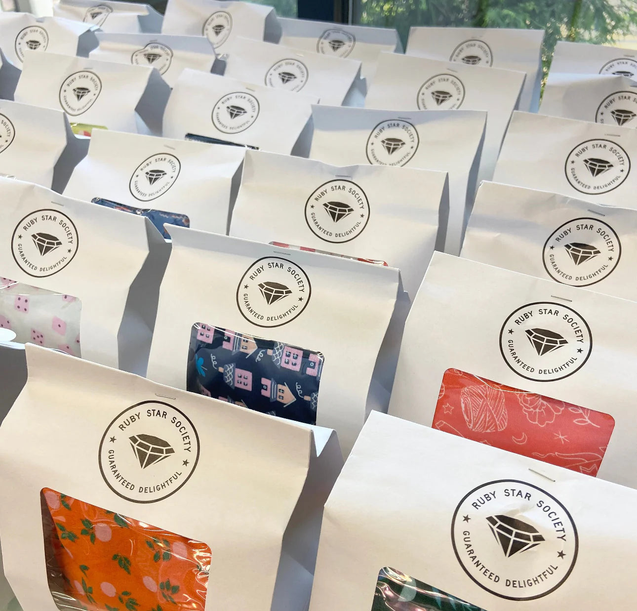 Ruby Star Society mystery scrap bag! It’s a ½ pound of random Ruby Star lines. These are recent Ruby Star Society lines, but it is a mystery pick from the bags we have. Many of the bags have the same line throughout it, while others have a mix of lines. You will get a factory sealed bag.