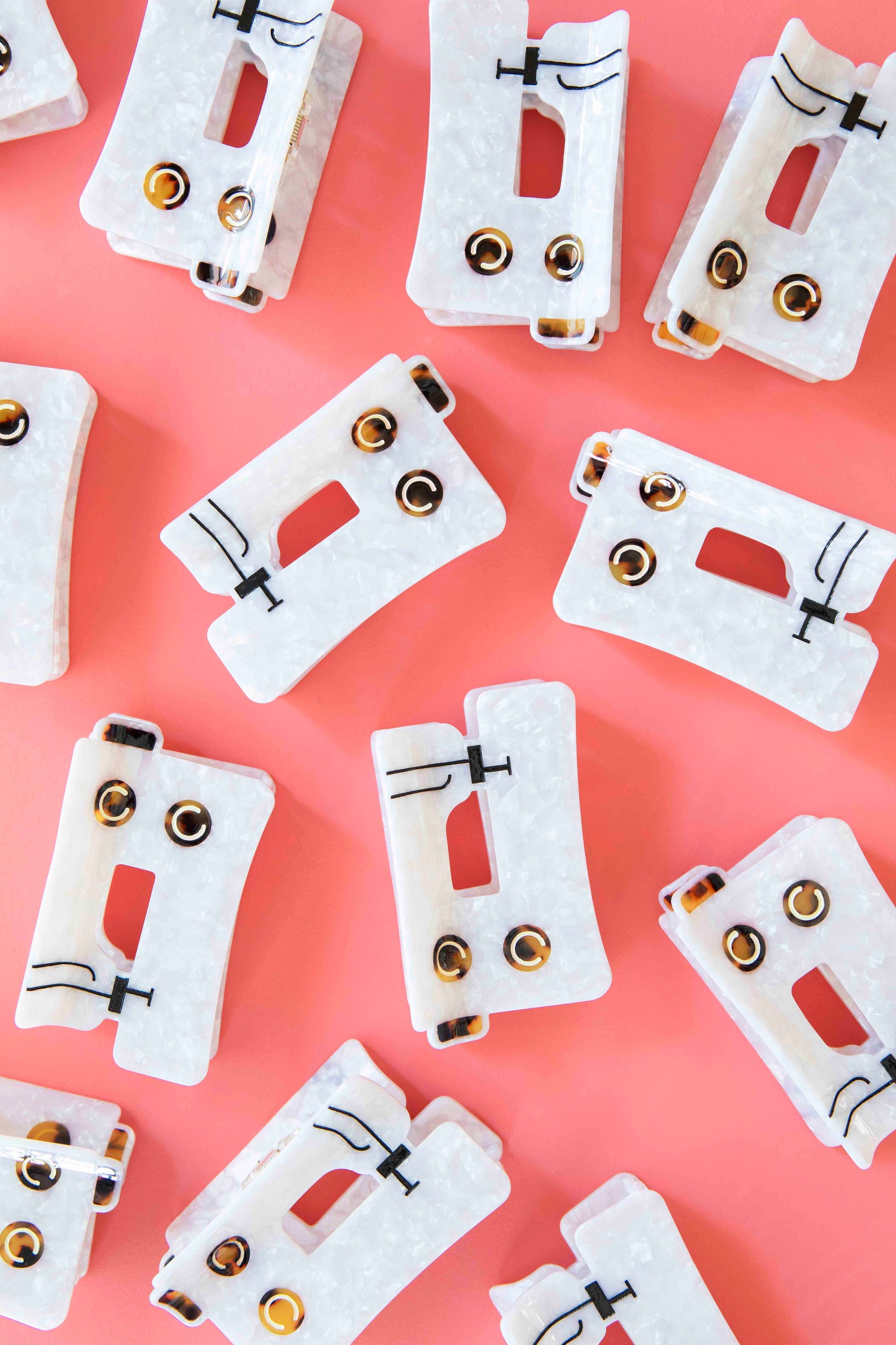 Crafted from plant-based acetate and available in pearl white or tortoise shell, it’s gentle on hair and adds a creative twist to your everyday look. Whether you're stitching up a storm or just running errands, this clip keeps your hair secure while showing off your craft making pride.